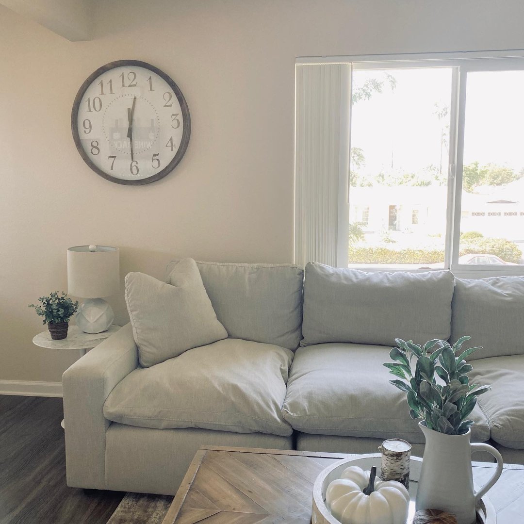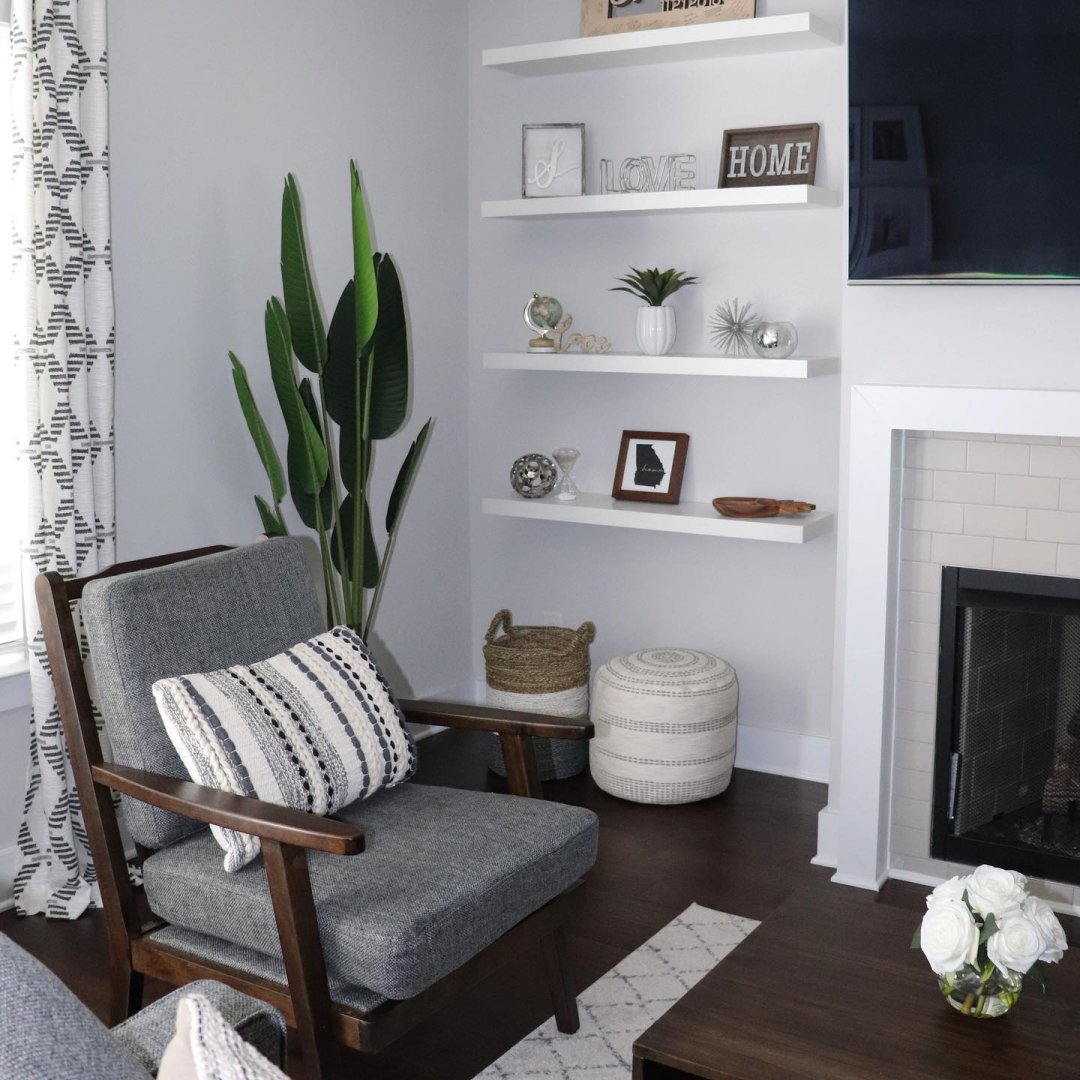 In your living space, put the TV, cables, wires and electrical components into a cabinet, hidden away when you’re not using them. Be thoughtful with placement of throw pillows to not overwhelm your sofa with textiles. Use minimalism when adding decorative objects and accessories.