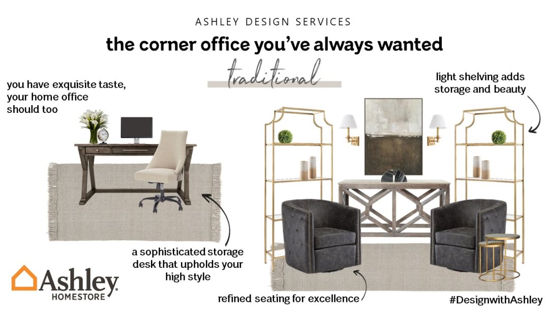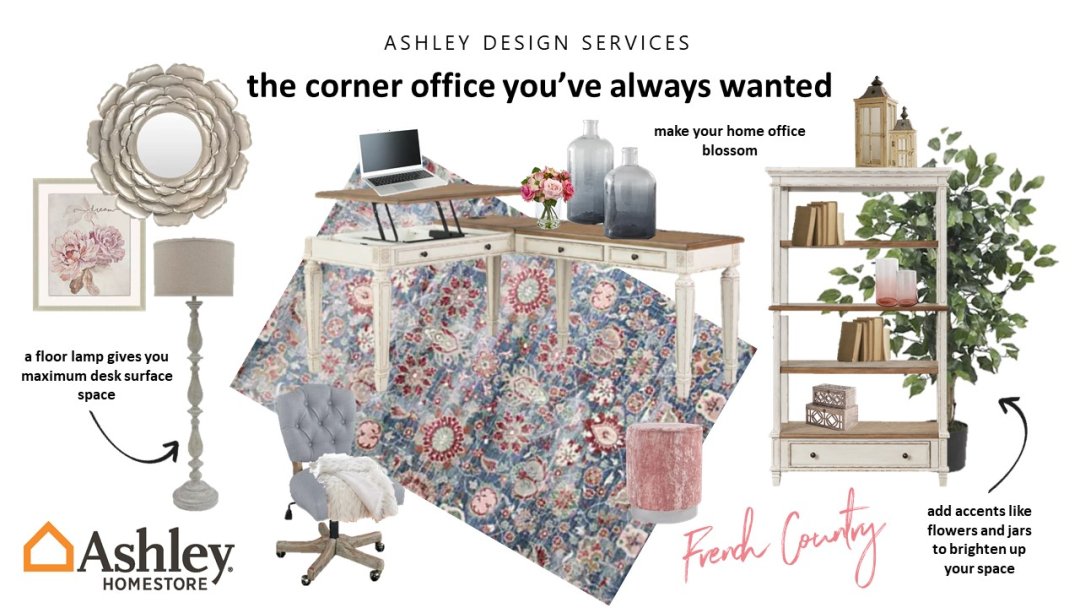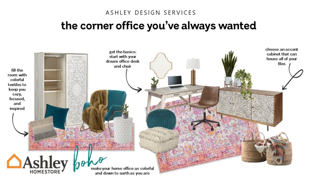 Share the space you create by using #MyAshleyHome on Instagram to possibly be featured on our feed! We’d also love to know your work-from-home tips and tricks for tackling this challenge. You can also find more home office inspiration on Pinterest.