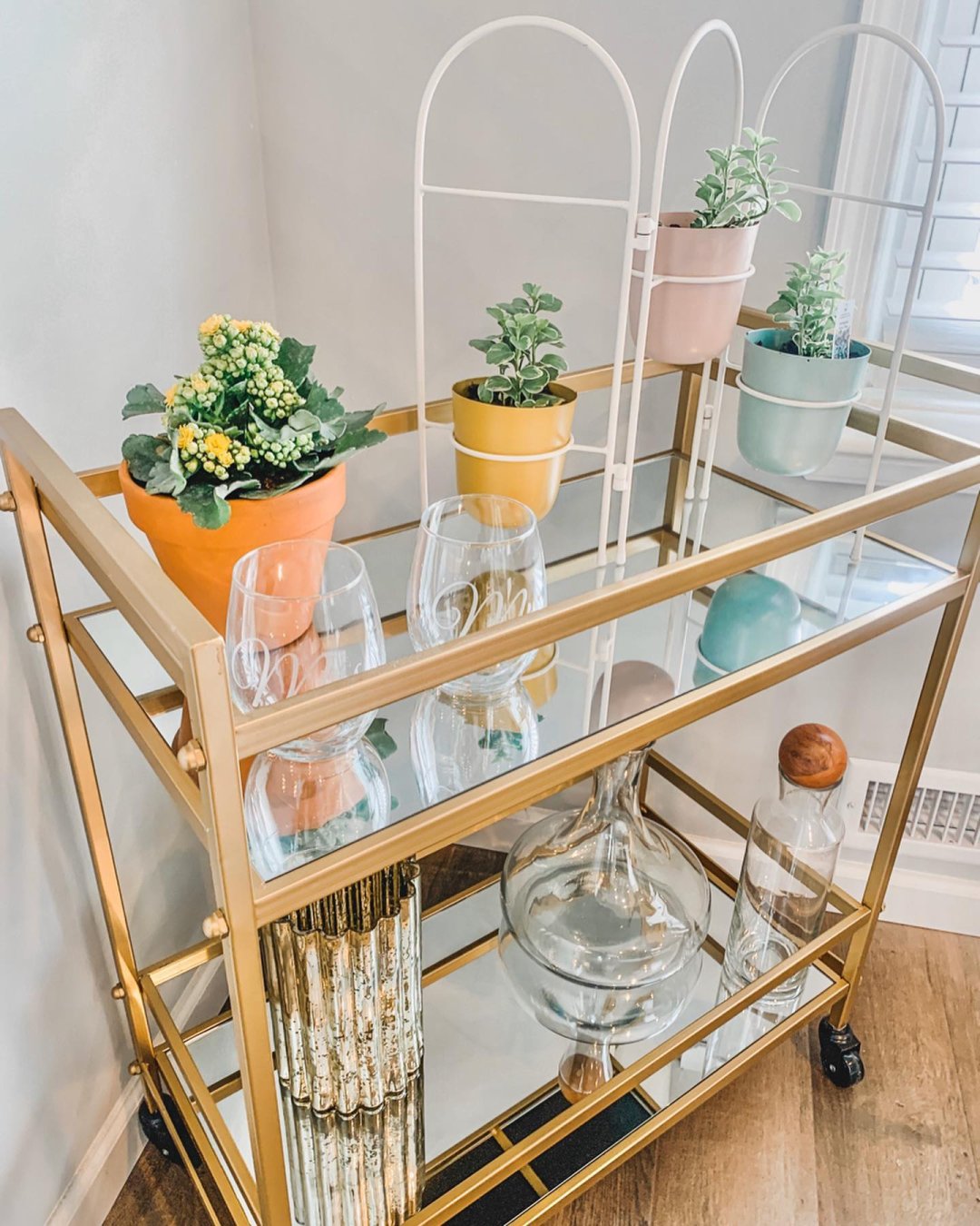 Bar carts are an ornate and space-efficient way of achieving a bar area in your home. Display your collection and let your beverages act as décor. Pair the cart with beautiful accessories like a metallic muddler for mojitos and elegant glasses to toast your hard work during the week. We love bar carts because you have the option of making them as central to your space as you’d like them to be.